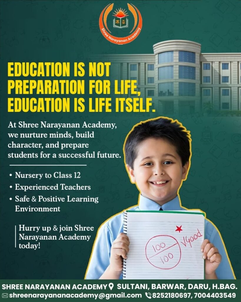 दारू प्रखंड में शिक्षा के क्षेत्र में तेजी से उभरते श्री नारायणन एकेडमी को अब क्षेत्र के अभिभावकों का लगातार भरोसा मिल रहा है।