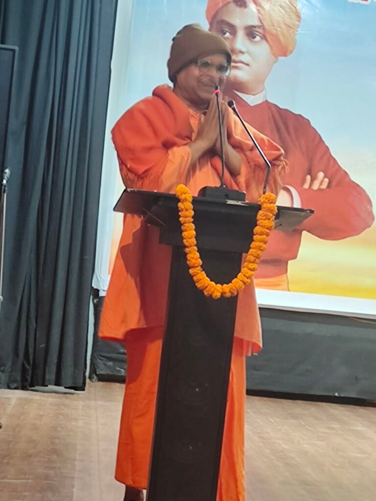 कार्यक्रम के मुख्य वक्ता स्वामी भावेशानंद जी महाराज (रामकृष्ण मिशन, रांची) ने अपने प्रेरक एवं ओजस्वी संबोधन में कहा कि स्वामी विवेकानंद का संपूर्ण जीवन युवाओं के लिए एक जीवंत पाठशाला है।